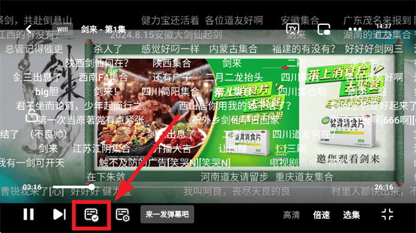 切换至横屏模式后,点击屏幕上弹幕图标。
