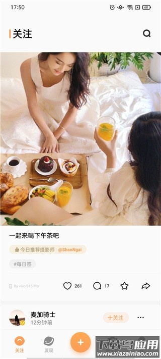 3、在关注页可查看官方及摄影达人分享的照片,支持点赞、评论与转发;