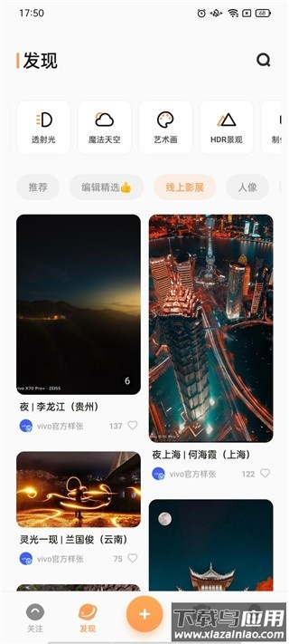 4、发现页汇聚全国各地的风景与摄影作品,供用户浏览获取灵感;