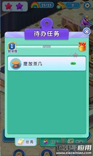 1、集市重建从奶茶店开始,点击任务指引消耗红星摆放新茶几;