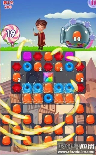 5、五连组合创造魔法旋涡,触发时会收集全场同色糖果;