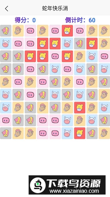 蛇年快乐消是一款充满节日氛围的休闲消除游戏,以蛇年为主题设计了各种精美元素和图案;玩家需要在时间限制内,通过交换相邻位置将三个或更多相同图标连成一线即可消除得分,简单规则配合紧张节奏,既考验眼力又挑战策略;喜欢这类轻松益智游戏的朋友,欢迎在本站下载体验。