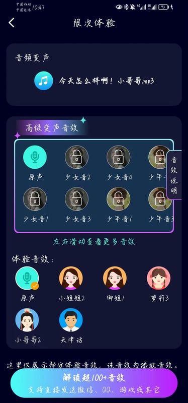历史效果记忆:快速切换使用过的变声设置;