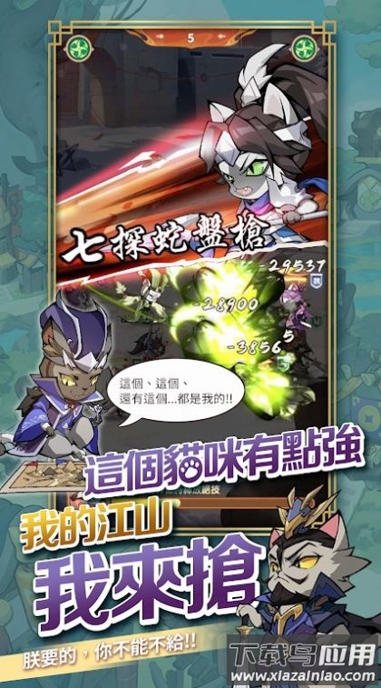 这款以三国为背景的策略卡牌手游将众多经典人物魔改为猫咪形象,玩家能够收集各式可爱的三国名将猫卡牌,率领猫咪大军攻占洛阳,实现天下一统。游戏操作简便,挑战丰富,适合喜欢轻松休闲又带有策略乐趣的玩家下载体验。