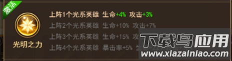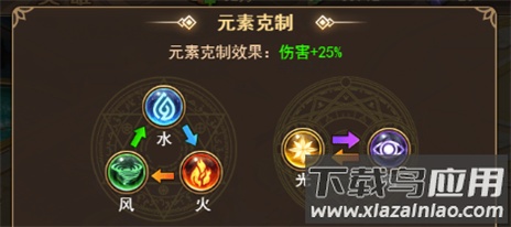 游戏中设有水、风、火、光、暗五大元素,彼此存在相克关系。合理配置阵容可激活额外加成,包括暴击率提升2%、生命提高14%、攻击增加11%,策略搭配不氪金也能畅玩。