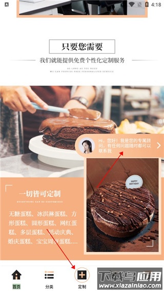 1、进入app后选择【定制】栏目,在该页面联系助手客服;