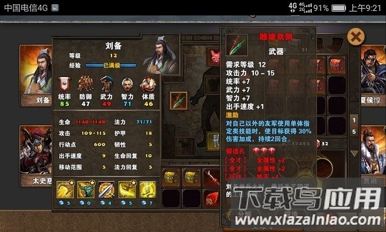 统帅+7,武力+7,智力+7,手速+1,攻击10-15;对自身外友军使用单体技能时,目标获得30%伤害加成,持续2回合。