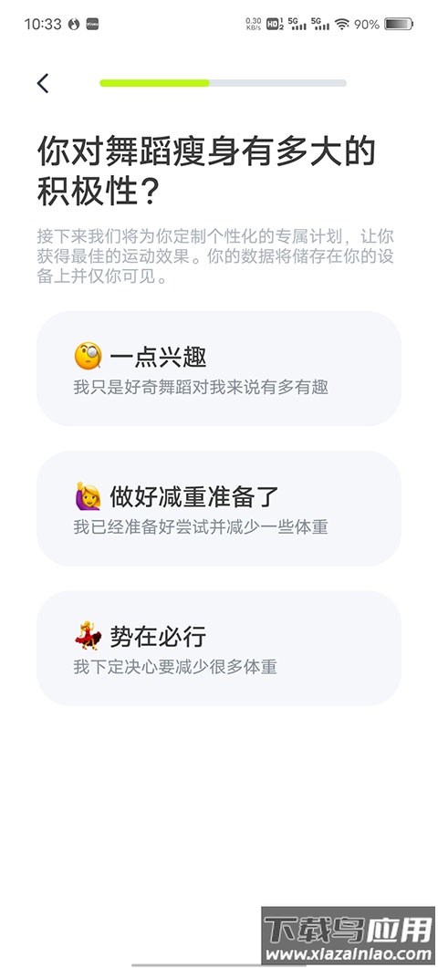 4. 设定对舞蹈瘦身的积极性程度,例如选择势在必行;