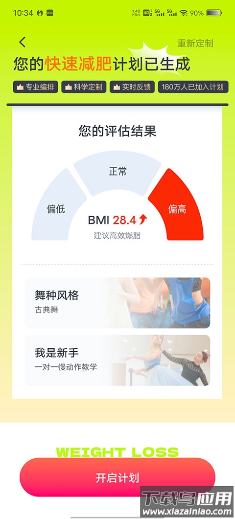 1. 打开应用后根据个人需求选择目标,比如快速减肥;