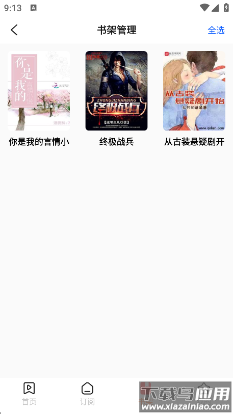 4、返回首页点击书架选项,即可查看已保存的小说列表。