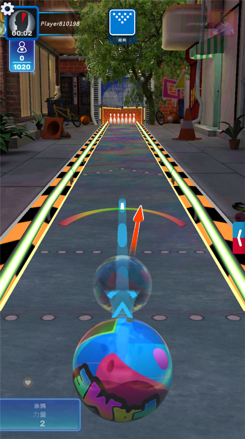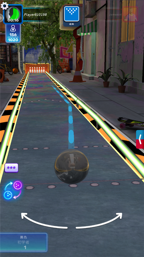 经典保龄模式:标准10球道,需全中或补中积累高分,注意保留技能应对后期复杂球瓶布局;