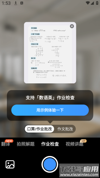 4、也可使用“作业检查”功能,对作业拍照进行智能批改。
