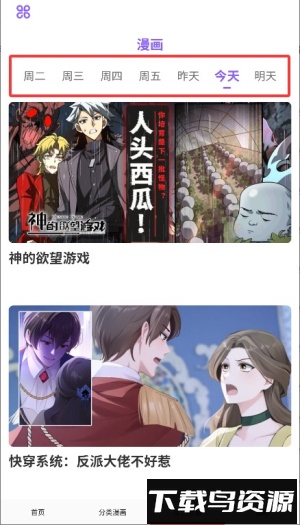 2、在首页导航栏选择每日漫画栏目,这里会展示当天更新的热门漫画作品。