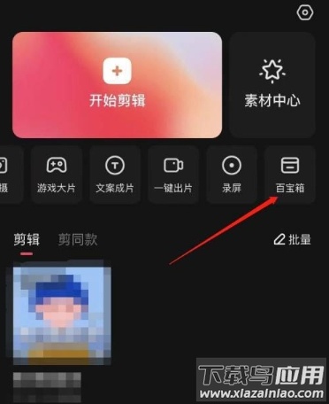 第二步:进入快影主页后,点击上方“百宝箱”选项;