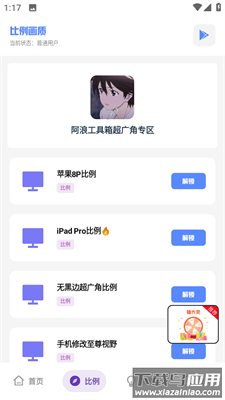2、进入比例功能,可以自由调整手机或平板的显示比例,按个人喜好修改。