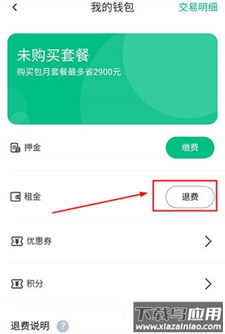2、在租金选项旁找到“退费”按钮,提交申请后等待处理即可。