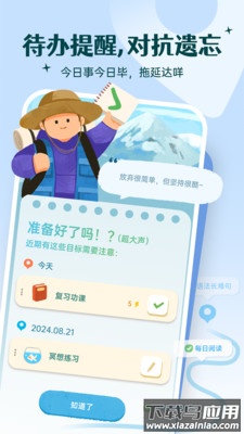 目标追踪:每日完成计划打卡,逐步养成好习惯或实现长期目标;待办提醒:有效防止拖延和遗忘,推动今日事今日毕;情绪记录:记录每日心情与目标完成后的感悟,掌握情绪变化趋势;Link互动:通过打卡帮助Link前进,获取金币与亲密度,解锁更多角色。