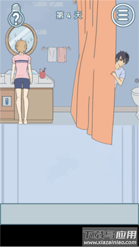 第四关:点击场景二的刷牙杯拿到螺丝刀,打开柜子找到开关,用螺丝刀调节冷热水;先放满水,打开开关使水沸腾镜子起雾,关掉开关,回到场景一点击闹钟叫醒女朋友,即可通关;