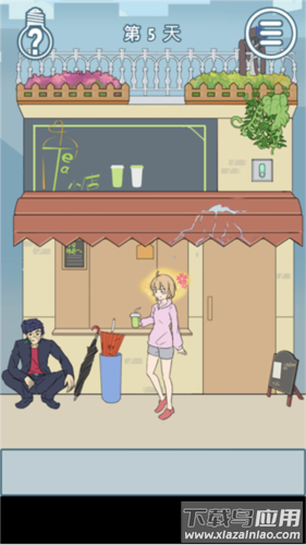 第五关:点击粉色花丛上的剪刀,剪断右边楼上的藤蔓,出现雨棚开关,点击开关后点开始,即可通关;