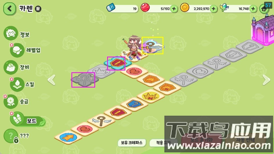 蜡笔系统说明;带有发光效果的格子使用金色或紫色蜡笔点亮后,可为全体使徒提供属性增益;普通格子使用蓝色或白色蜡笔点亮后,仅提升单个使徒的属性。
