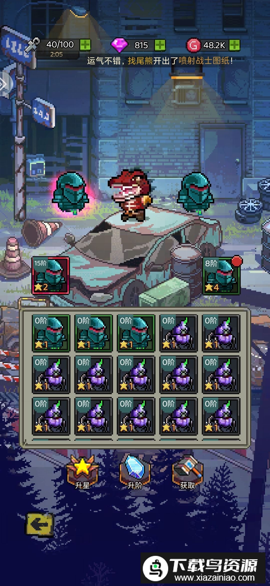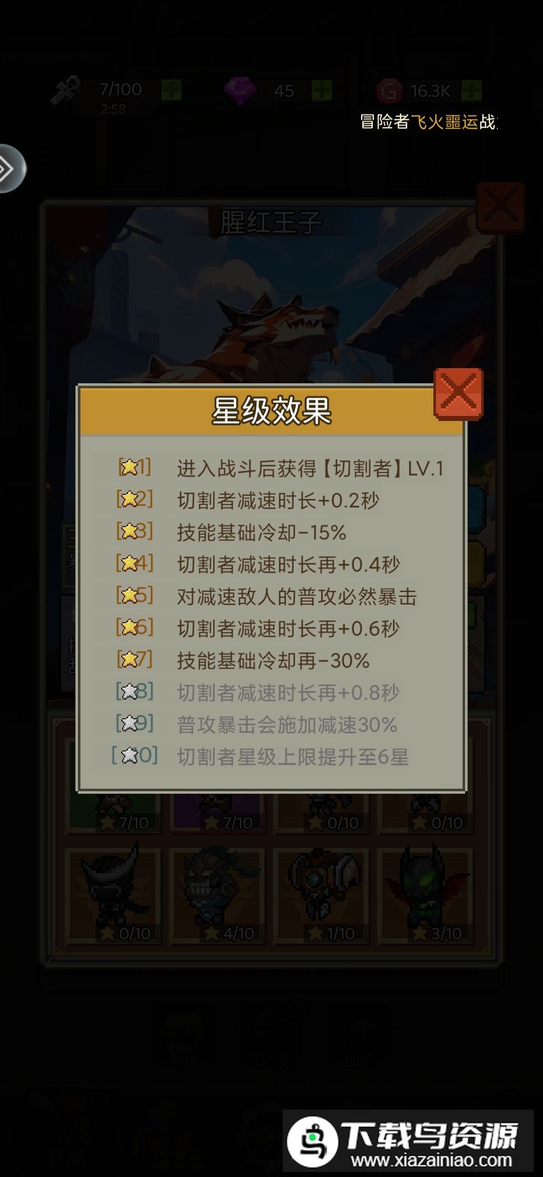 角色方面,闯关赠送的猩红王子相当不错,能减少技能冷却,我主要靠他通关;扳手哥(变种人)前期表现也可观,但金色品质升星难度大,后期潜力更高却不易培养。
