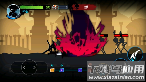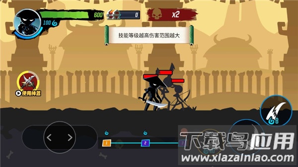 1、暗黑风格的火柴人形象设计,招式流畅,终极技能威力强大;
