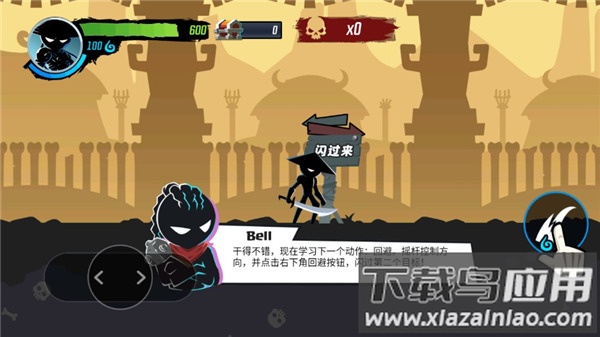 3、接下来学习回避动作,利用摇杆控制方向,并点击右下角回避按钮,闪避第二个目标;