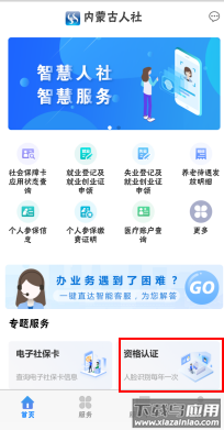 一、打开内蒙古人社应用,点击右下角资格认证入口;