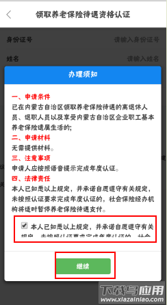 二、阅读办理须知后勾选同意选项,点击继续按钮;