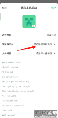 3、填写游戏名称,选择对应的模拟器平台,然后指定游戏文件的存储位置即可完成导入。