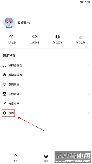1、安装完成后打开模拟器,下载你想玩的游戏;进入我的页面,点击设置选项查看详情。