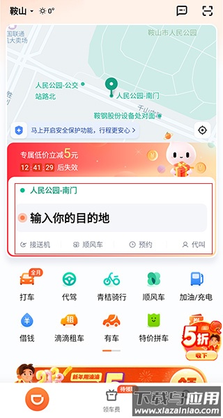 1、在本站下载并打开滴滴网约车app,登录我们的账号后回到首页,使用定位或者手动选择我们当前位置以及目的地