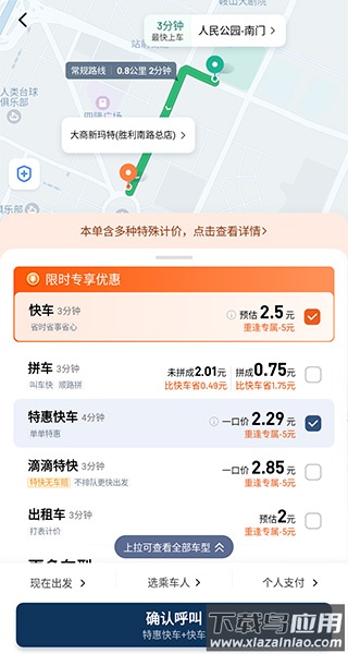2、之后选择我们想要呼叫的车辆类型,并点击下方的确认呼叫按钮,并等待车辆接单即可
