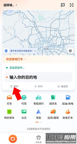 1、在本站下载并打开滴滴网约车app,登录我们的账号后回到首页,点击下图位置的预约选项