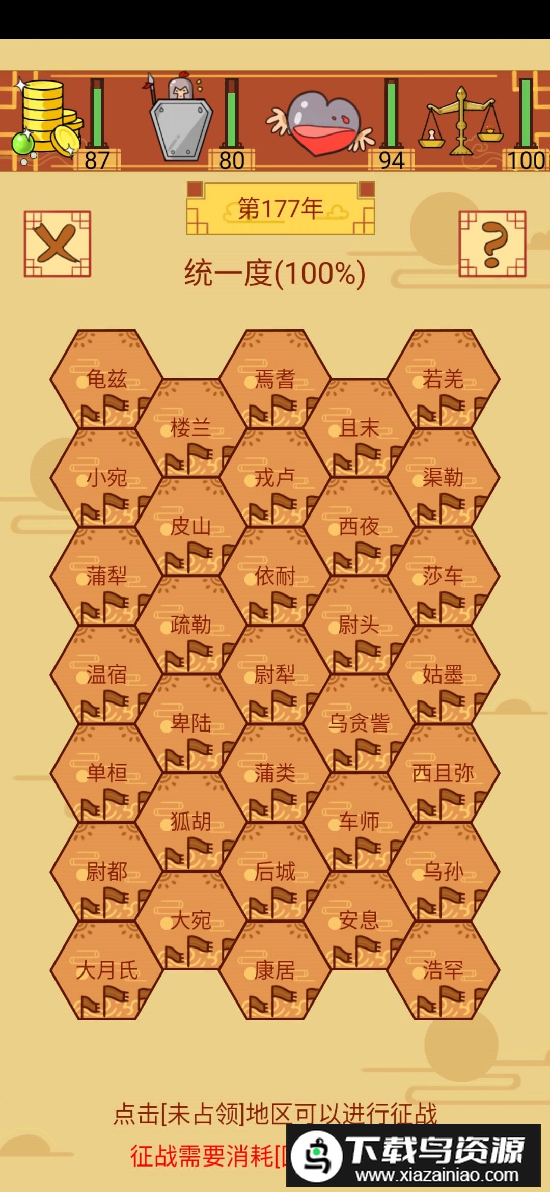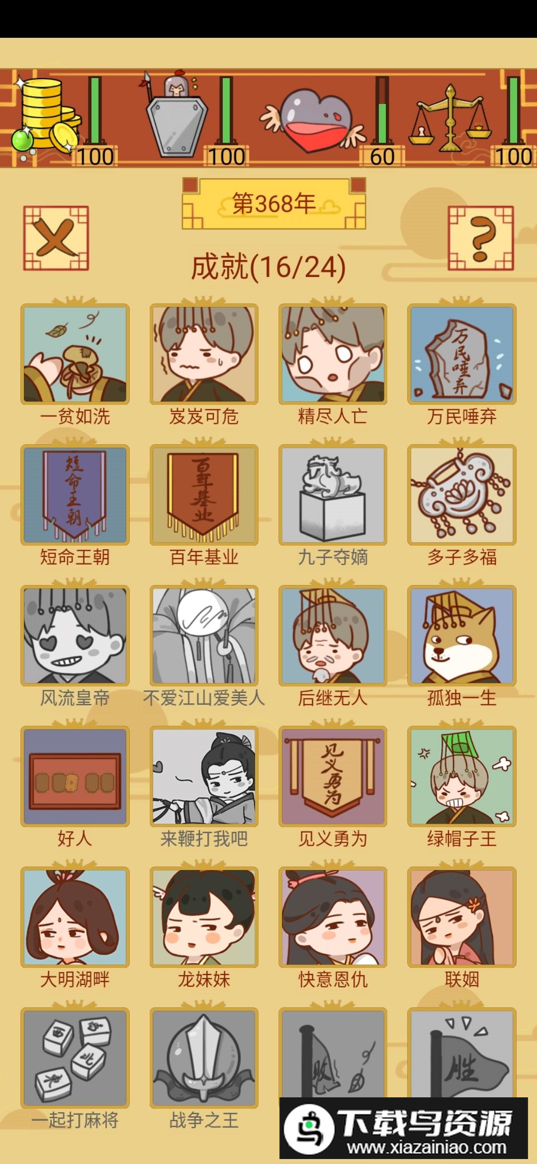 3.地图全部开启之后,只要坚持勤政,各项数值基本都能补满;处理政务时缺什么补什么,等四项属性都稳定后,就可以专注刷成就了。
