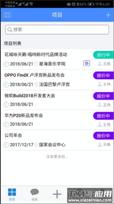 1、在本站下载安装运行软件,会看到项目、消息、+、产品库、我的等板块,其中项目列表页为首页;