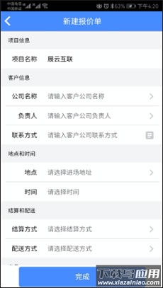 3、进入新建报价单页面,按照提示填写相关信息,项目名称是必填项其他为选填项;