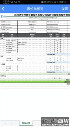 6、预览生成的报价单,然后跨平台发送到客户的微信里,客户收到的是标准EXCEL样式的报价单。