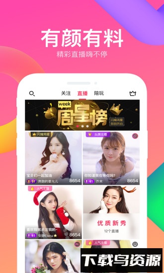 6.【颜值直播】才艺与颜值兼备的主播全天候在线,随时为你带来欢乐与互动;