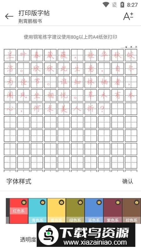 3. 导出字帖后可通过手机连接打印机或发送至电脑打印,推荐使用A4纸张进行打印。