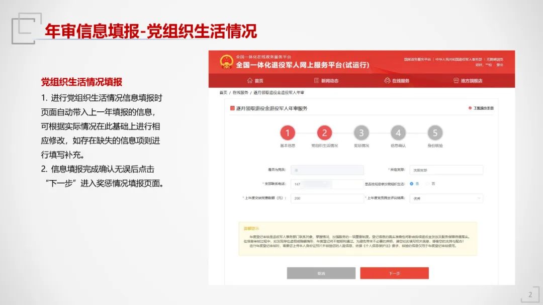 年度登记通常称为“年审”,可采用现场登记或线上登记方式。现场登记需携带身份证前往安置地退役军人事务部门办理;自2024年起,线上登记时间为每年1月1日至3月31日,具体步骤如下: