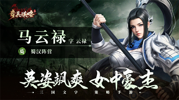 马云禄貌如天仙,武艺超群。在马腾、马休、马铁被曹操设计谋害后,追随马超发动复仇战。败于曹操后,与马超、马岱一同加入刘备军。在益州攻略战时结识赵云,结为了夫妇,与赵云一起在荆州战斗。