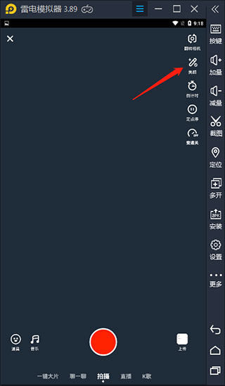 3、开启美颜:切换至前置摄像头后,点击右上角美颜按钮即可启动美颜功能。