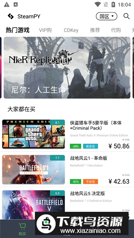 SteamPY游戏交易平台专为Steam玩家打造,致力于提供安全便捷的正规交易服务。在这里你能以超低价格购买各类游戏、CDKEY以及充值卡等,享受实实在在的优惠,是玩家们理想的省钱助手;喜欢的就在本站下载。
