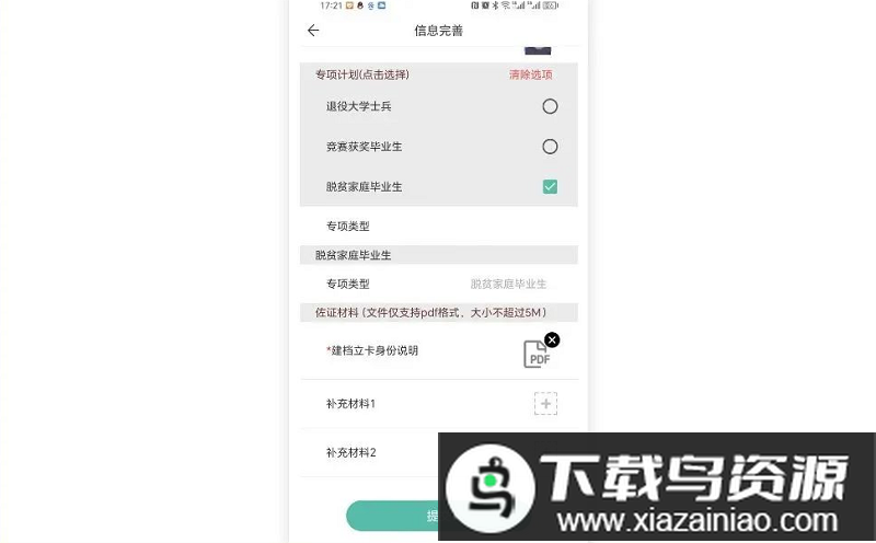 脱贫家庭毕业生:脱贫家庭毕业考生需在报名页面勾选【专项计划】下的【脱贫家庭毕业生】选项,并上传建档立卡身份说明pdf文件。