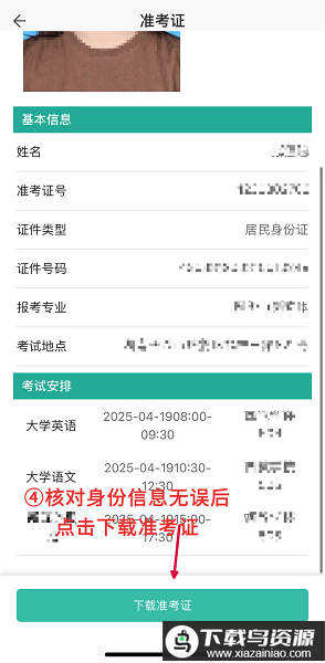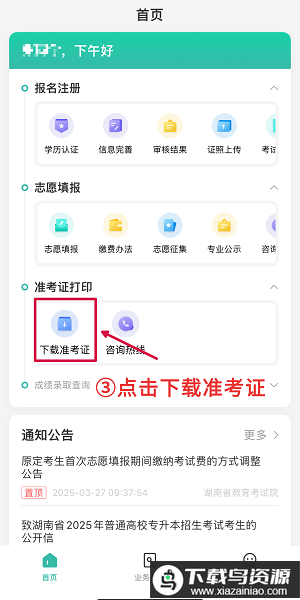 2、点击下载准考证。