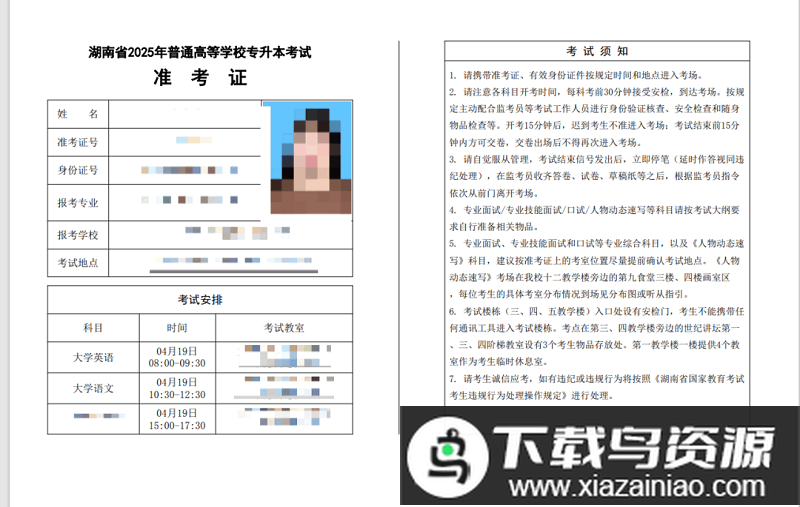 4、准考证示例图。