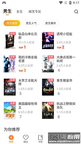 1、启动应用,自动进入免费专区,探索免费书籍。