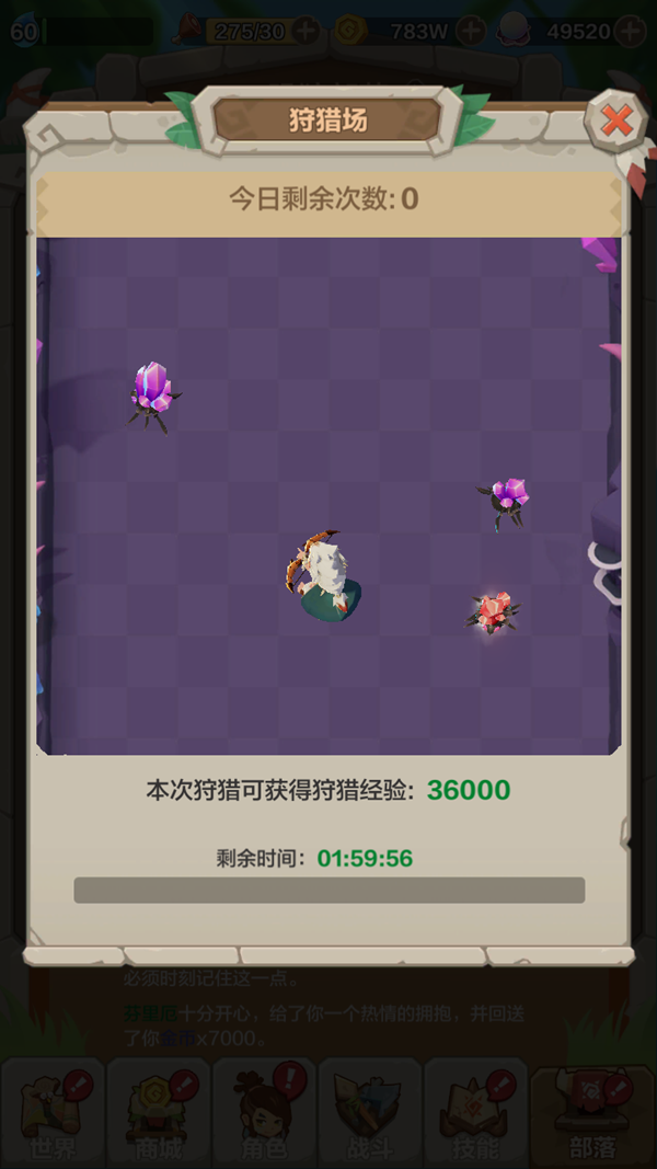 狩猎场是获取大量狩猎经验、提升狩猎等级的宝地,请记得每日前往狩猎。