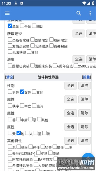 3、进入图鉴页面后,可利用筛选工具输入条件进行精准查询。